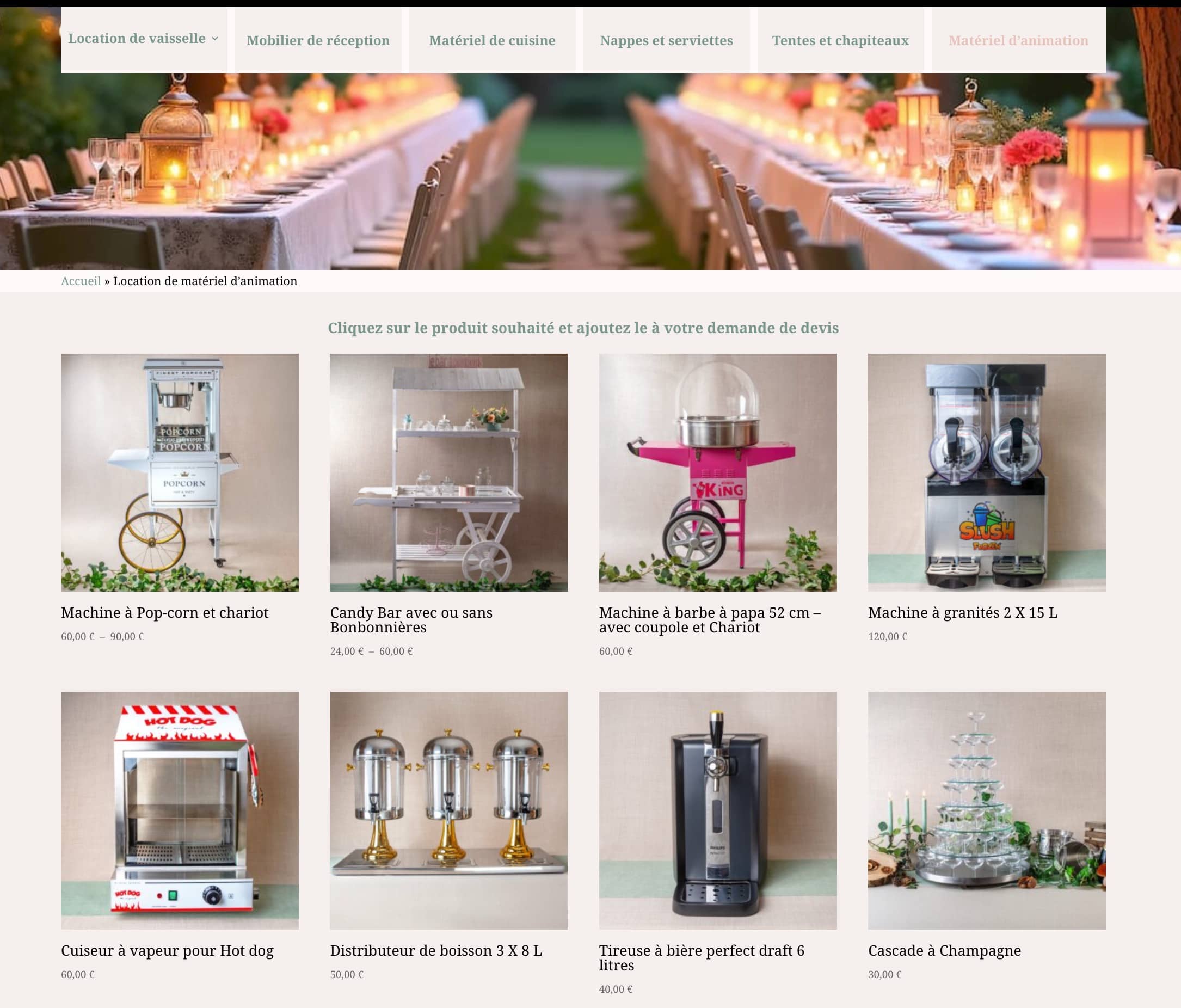 C’est dans ce cadre que nous avons réalisé la refonte complète du site de Beaujolais Réception, un prestataire spécialisé dans la location de matériel et de vaisselle pour événements, mariages et réceptions, basé à Saint-Étienne-des-Oullières, au cœur du Beaujolais.