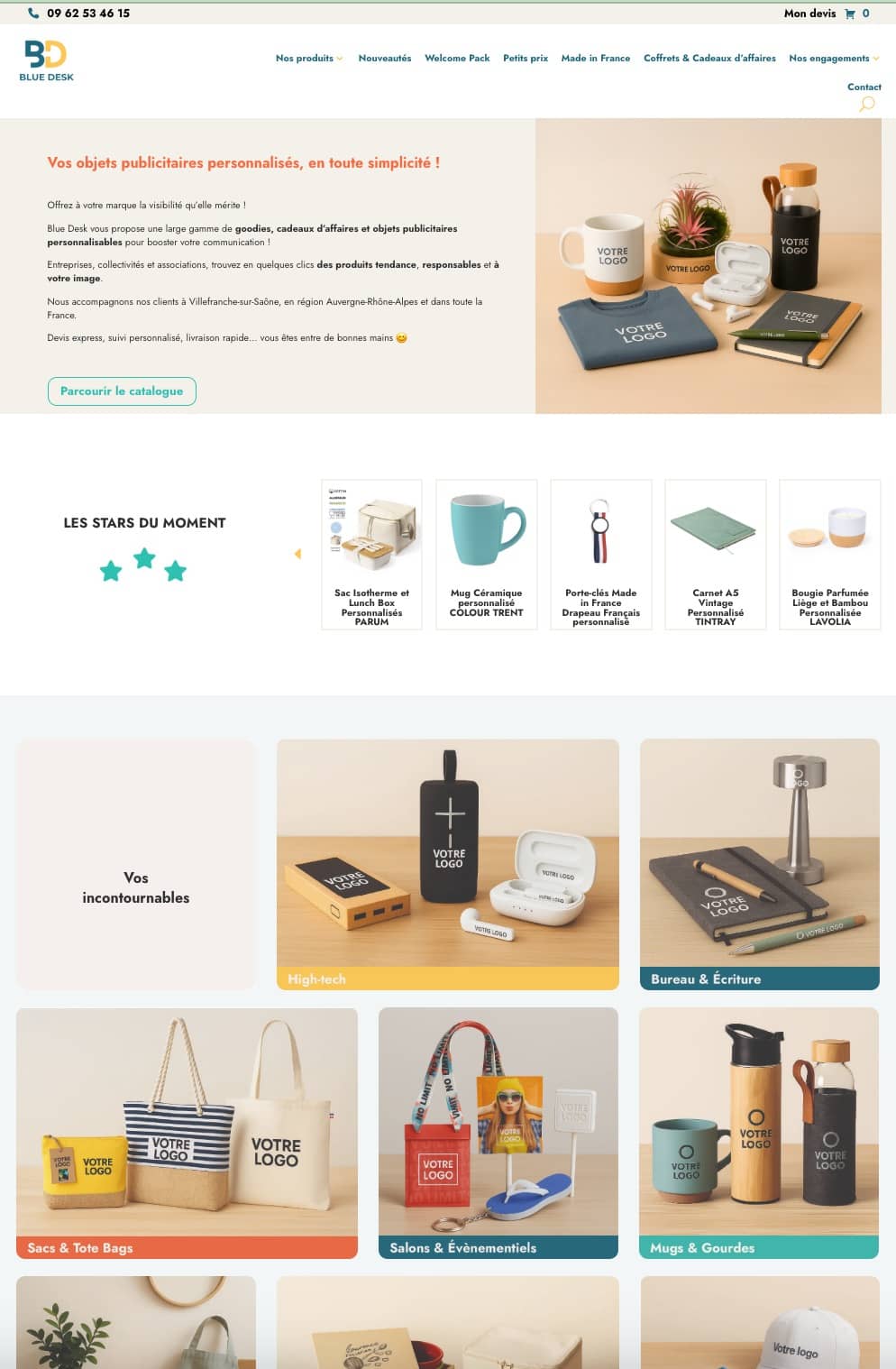 Création du site e-commerce Blue-Desk : une plateforme professionnelle dédiée aux goodies personnalisables