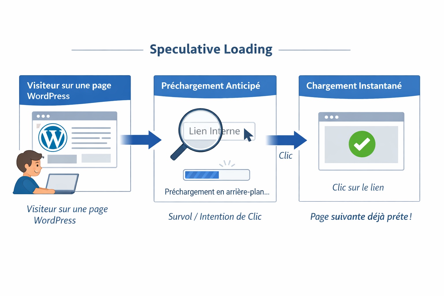 L’idée est simple : au lieu d’attendre le clic, WordPress aide le navigateur à préparer la page suivante juste avant la navigation.